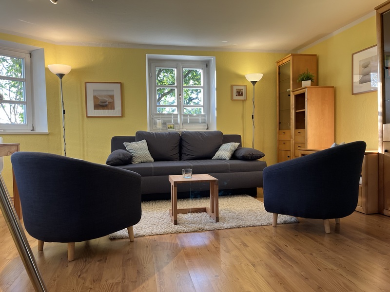 Die Terrasse der Einliegerwohnung ist großzügig und lädt bei schönem Wetter ein, einfach gemütlich zu frühstücken oder entspannt im Liegestuhl zu liegen und die Seele baumeln zu lassen.